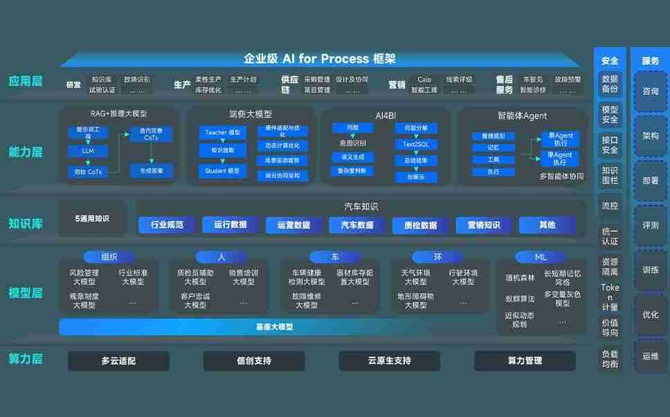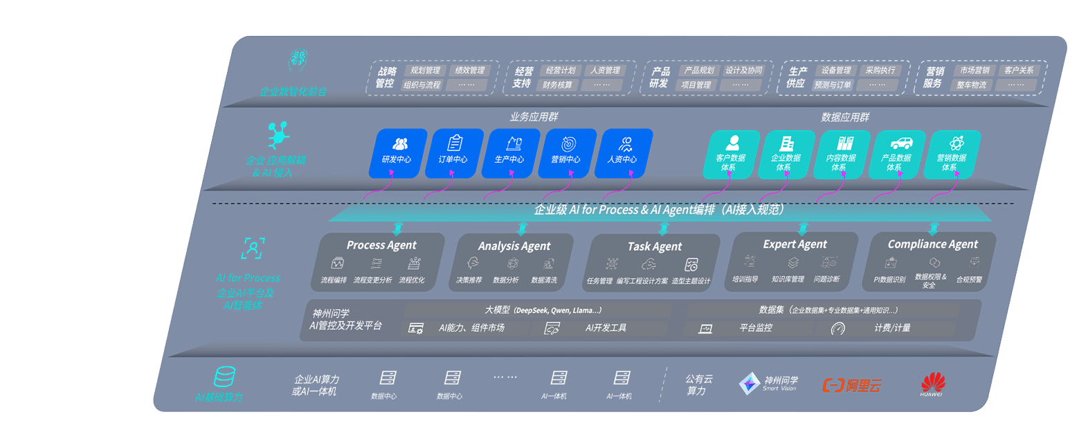 z6尊龙问学智车解决方案是一套基于AI技术的汽车行业智能化系统,,,覆盖从底层算力到顶层AI应用的全栈方案。。方案由算力层、、、模型层和应用层组成:算力层,,,方案支持多种一体机配置,,,具备云端灵活部署、、、多云适配以及动态优化计算资源的能力;模型层,,z6尊龙问学平台版提供了企业级AI应用一站式构建与管理平台,,支持基于后训练强化技术的汽车企业专属模型的训练、、评测和运营;应用层,,z6尊龙问学DeepSeek版提供包括超级员工、、、智能招采、、、智能营销、、智能客服、、AI for BI等一系列解决方案,,,,可助力汽车行业实现数字化转型,,,,让管理更智能、、响应更敏捷。。。。