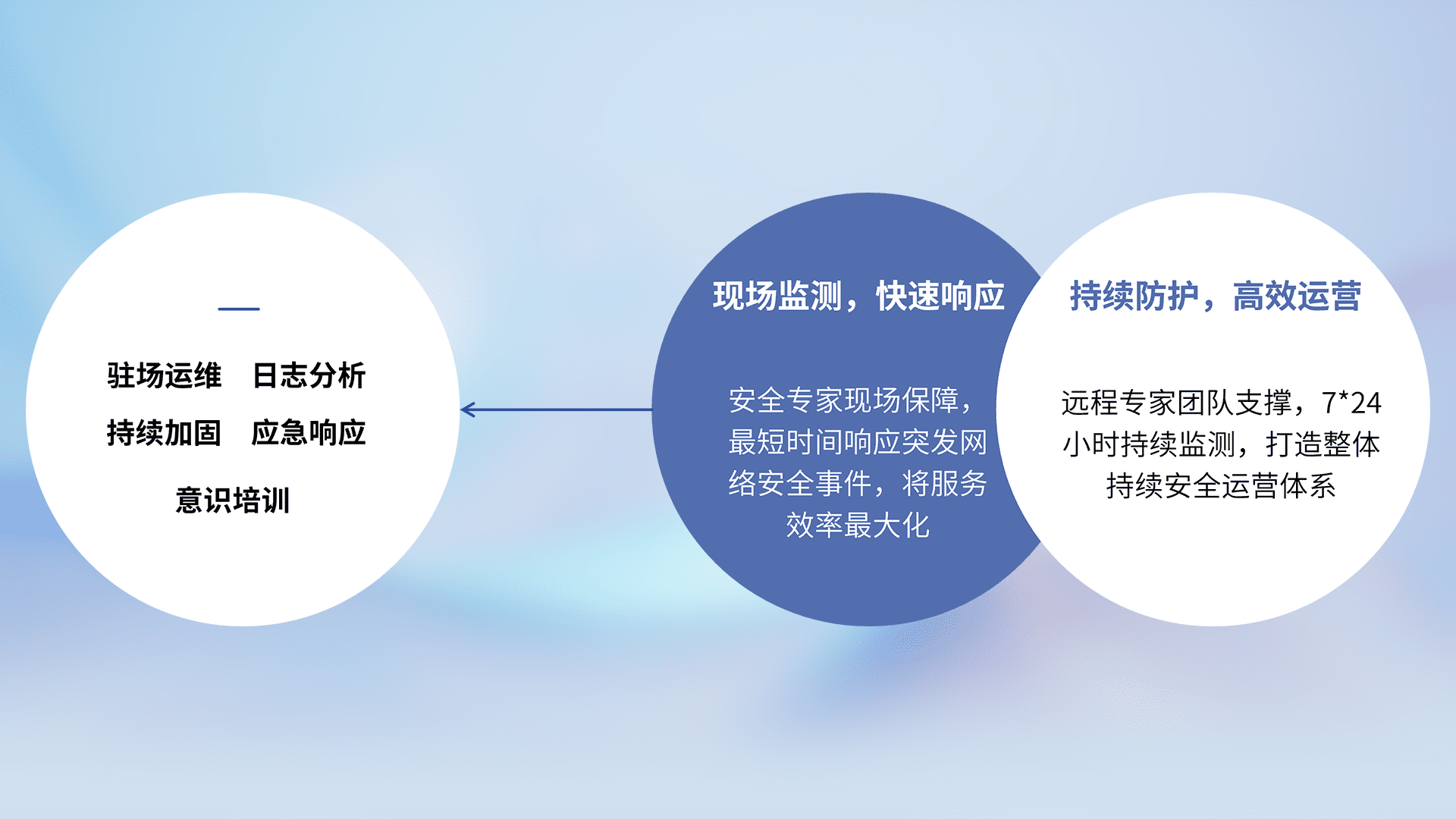 7X24小时持续监测安全事件,保持安全策略有效性,降低资产脆弱性风险,,,精准拦截黑客攻击,,,,减少被黑客利用的机会,,第一时间遏制,,降低损失。。。。